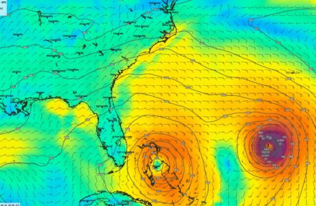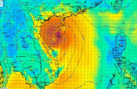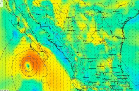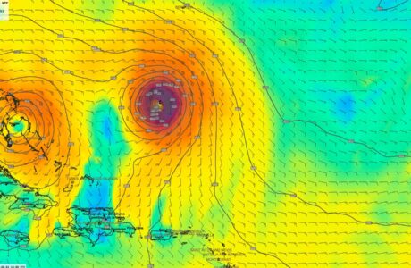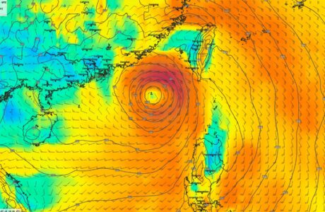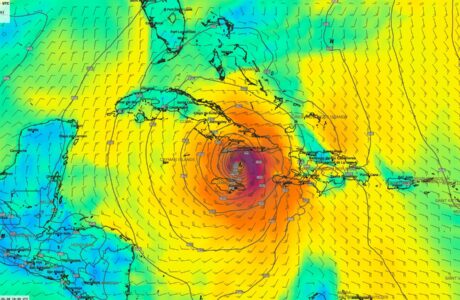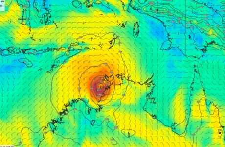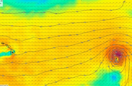 Les phénomènes météo (tempêtes, cyclones, ouragans, typhons) actuellement dans le monde. Ils sont localisés sur le globe avec des repères rouges interactifs en lien avec les textes des phénomènes (surbrillance rouge lors d'interaction dans les 2 sens)